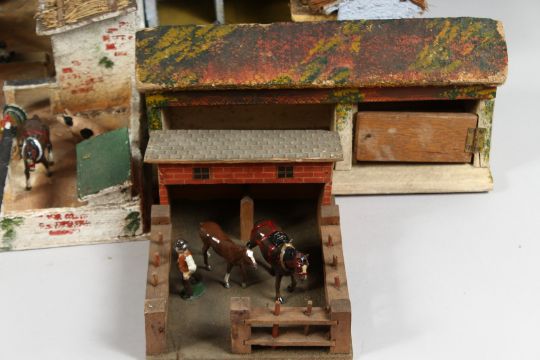 A COLLECTION OF FARM BUILDINGS, COTTAGES STABLE AND ANIMALS.