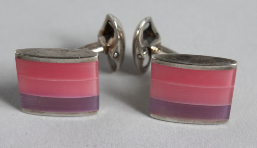 A PAIR OF SILVER AND ONYX CUFF LINKS
