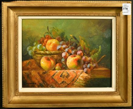 J. HOWARD. (20/21st Century) A pair of still life of fruit, including grapes, apples and pears, oils on board.