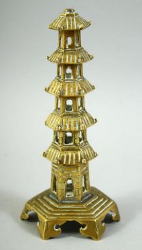 A BRASS MODEL OF A PAGODA, 19.5cm high.