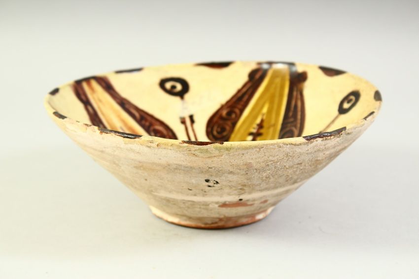 AN AFGHAN PART-GLAZED POTTERY BOWL, the interior decorated with stylised motifs. 20cm diameter