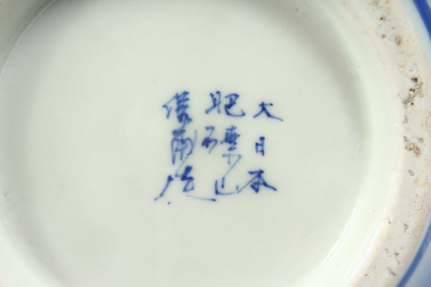 A JAPANESE BLUE AND WHITE PORCELAIN VASE, decorated with flora, the base with nine character mark, 27.5cm high.