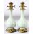A PAIR OF CELADON PORCELAIN VASES CONVERTED TO LAMPS with brass mounts, 40cm high.