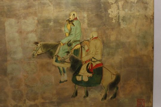 ATTRIBUTED TO NGUYEN VAN MINH (1930-2014) Vietnam 'Le Tam', Hunters with dogs, mixed media on lacquered wood, with marks / sealed, 35.5" x 51.25".