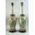 A PAIR OF CHINESE CANTON FAMILLE ROSE PORCELAIN LAMP VASES, painted with panels of figures as well as birds, butterflies and native flora, with moulded ring handles, each mounted to a hardwood base and with brass lamp fitting, overall 62cm high.