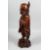 A LARGE CHINESE CARVED HARDWOOD FIGURE OF A SAGE holding a scroll, with inset teeth and eyes, the figure raised on a carved hardwood base. 50cm high