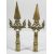 A PAIR OF 18TH/19TH CENTURY SRI LANKAN CEYLONESE CEREMONIAL BRASS SPEAR HEADS, 34.5cm long.