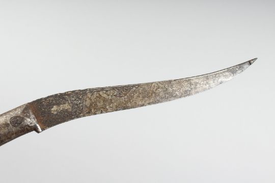 A LARGE INDO PERSIAN STEEL DAGGER AND SCABBARD, the dagger with engraved decoration, 47cm long overall.