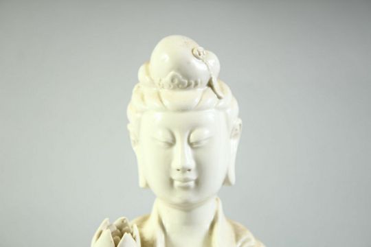 A LARGE BLANC DE CHINE FIGURE OF GUANYIN, 46.5cm high.