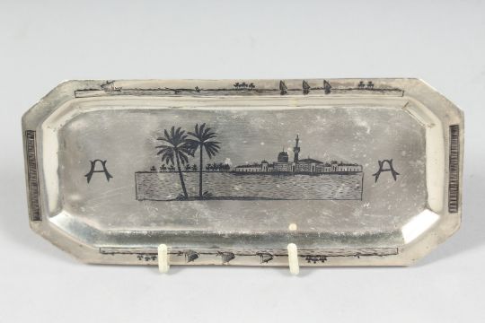 AN IRAQI SILVER NIELLO SILVER FOUR PIECE CRUET SET, (4).