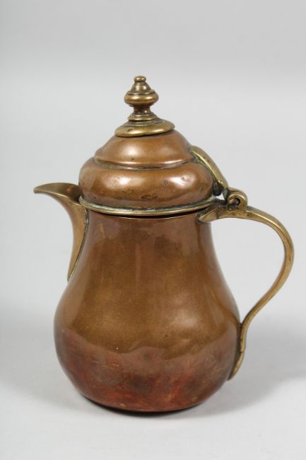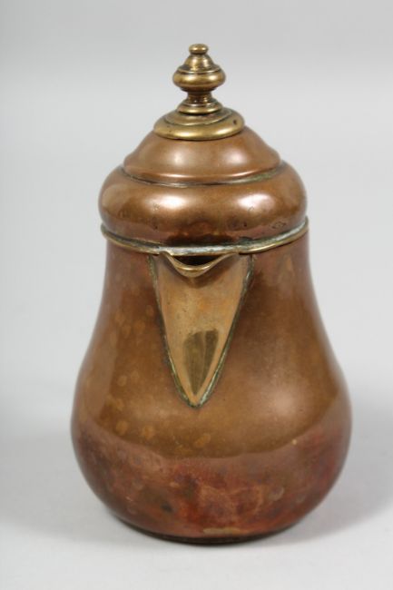 AN 18TH/19TH CENTURY OTTOMAN TOMBAK GILT COPPER COFFEE POT, the inner lid with traces of gilt, 14.5cm high.