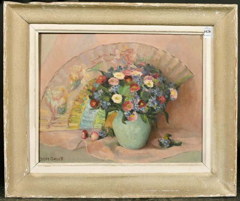 Sylvia Gardette, 20th Century French, a still life of flowers and a fan, oil on canvas, signed, 13" x 16" (33x 41cm).