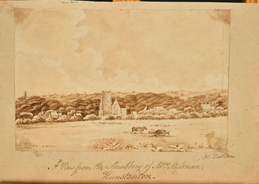 W. Dalton (19th Century) British, 'A View from Shrubbery of Mrs Styleman, Hunstanton', watercolour, signed and inscribed, 4.5" x 6.75", together with a group of watercolours and drawings of Norfolk and Suffolk by various hands, (unframed) (13).