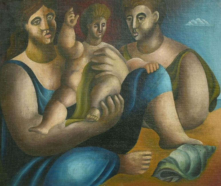 Manner of William Roberts (1895-1980) British, a family group, oil on canvas laid down, 9.5" x 12".