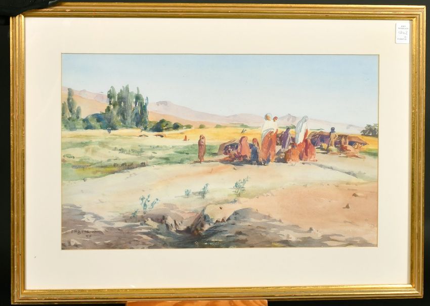 Eileen Trench, circa 1925, Brahui Nomads, India, watercolour, signed, 11.5" x 20" (32 x 51cm), along with an Indian View by Phyllis Toovey, circa 1930, 9" x 12.5" (23 x 32cm), (2).