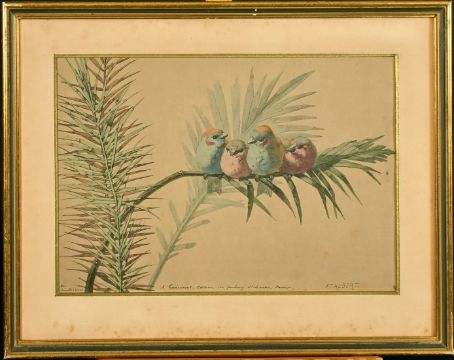 Felix Albert, a group of 3 hand coloured prints of small birds, 7.25" x 10.5" (18 x 27cm), along with 2 watercolour and pencil drawings of birds, indistinctly signed and dated 1836, 8.5" x 10.5" (21 x 27cm), (5).