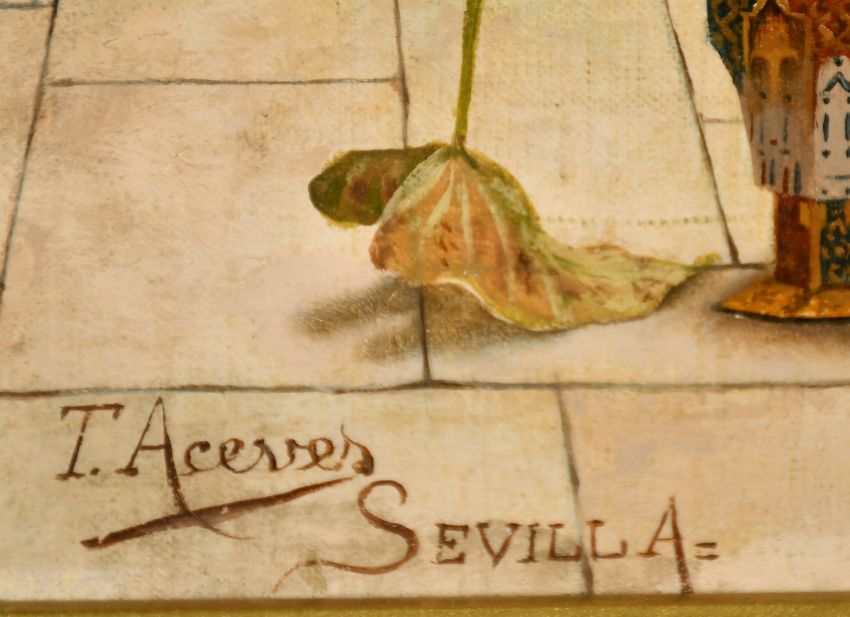 Tomas Aceves, Thomas Aceves de Loredo (19th/20th Century), courtyard of a Moorish palace, oil on canvas, signed and inscribed 'Sevilla', 24" x 18".