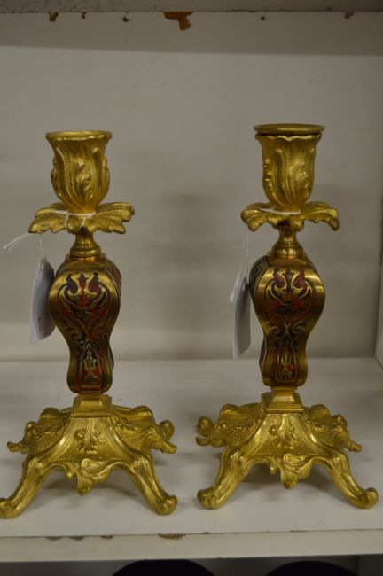 A pair of French ormolu and boulle candlesticks.