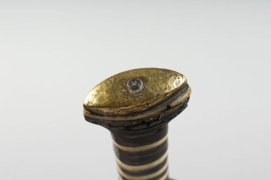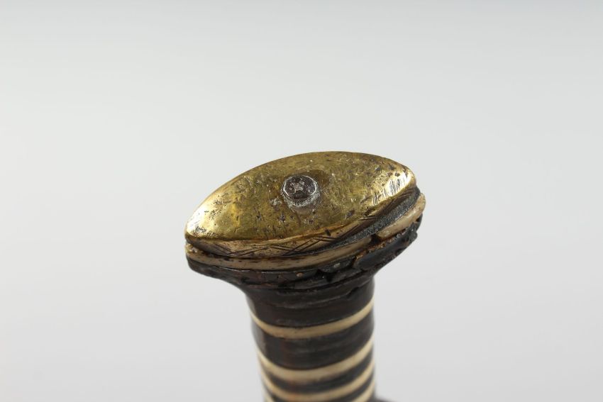 A 19TH CENTURY OTTOMAN SYRIAN BONE INLAID DAGGER, the blade with inscription, 27cm long.