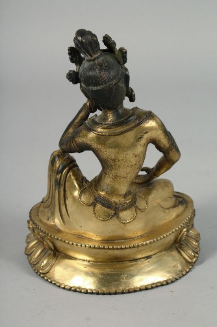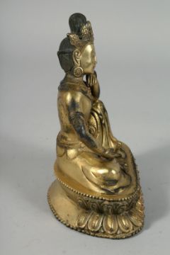A THAI GILT BRONZE FIGURE OF A SEATED DEITY, 19.5cm high.