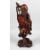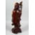 A LARGE CHINESE CARVED HARDWOOD FIGURE OF A SAGE holding a scroll, with inset teeth and eyes, the figure raised on a carved hardwood base. 50cm high