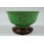 A CHINESE GREEN GLAZED PORCELAIN DRAGON BOWL with hardwood stand, the exterior with carved decoration depicting dragons amongst clouds, six-character mark to base, 15.5cm diameter.