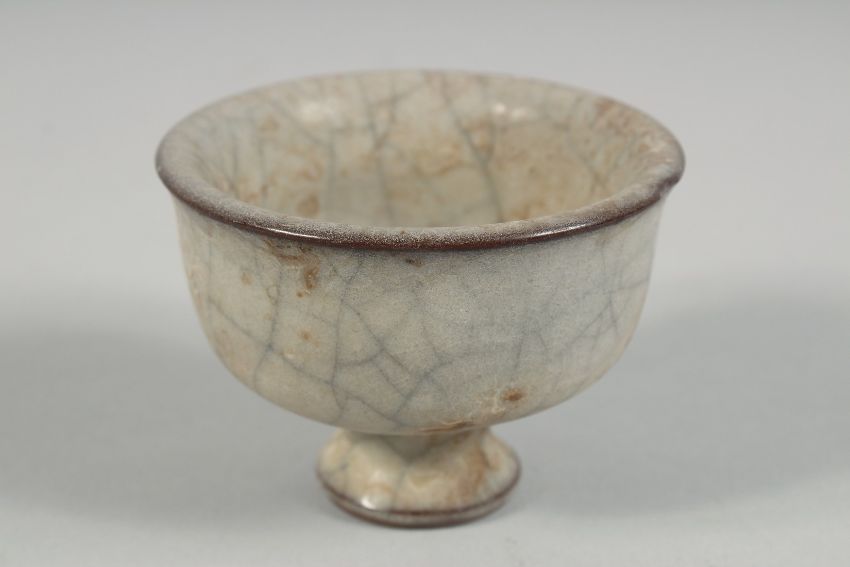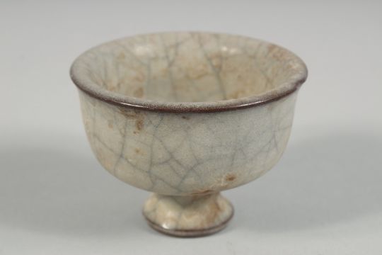 A CHINESE CRACKLE GLAZE FOOTED CUP, 8cm diameter.