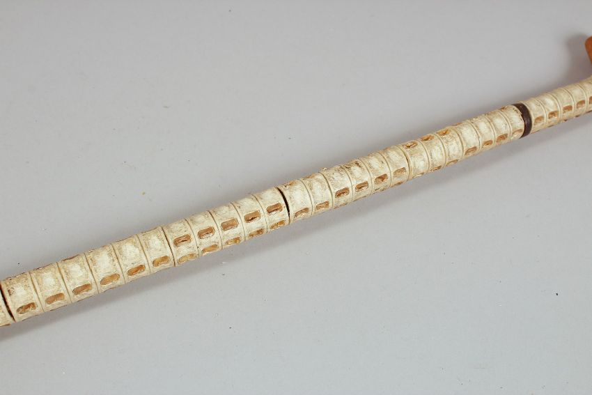 AN ANTIQUE SHARK VERTEBRAE WALKING STICK, with wooden handle, 90cm long.**Please note: this item can only be sold within the UK**
