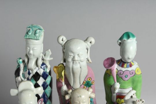 A COLLECTION OF NINE CHINESE FAMILLE ROSE PORCELAIN IMMORTAL FIGURES, the tallest 23.5cm high