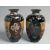 A PAIR OF JAPANESE CLOISONNE VASES, decorated with a central panel to each side with a dragon and phoenix, further decorated with butterflies and flower heads, 25cm high.