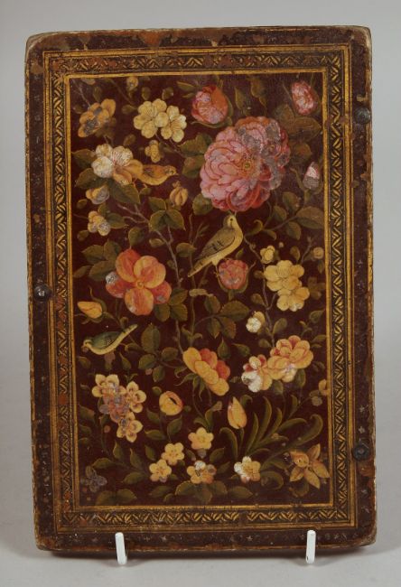A 19TH CENTURY PERSIAN QAJAR LACQUERED PAPIER-MACHE MIRROR FRAME, 21.5cm x 14cm.