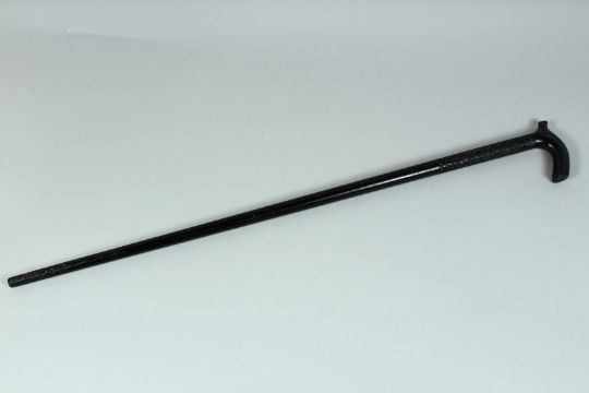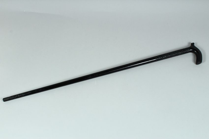 A POLYNESIAN BLACK HARDWOOD WALKING STICK carved with various designs