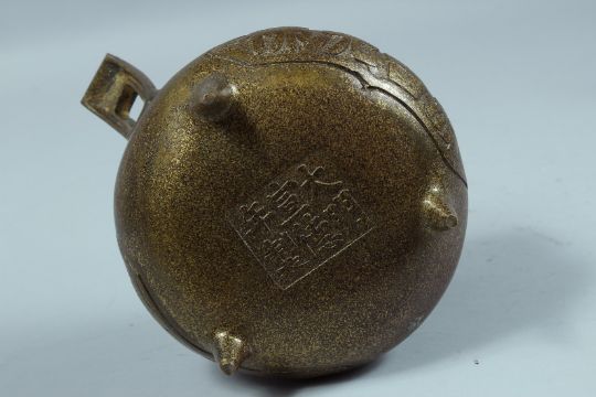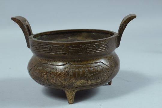 A CHINESE TWIN HANDLED CIRCULAR BRONZE CENSER.