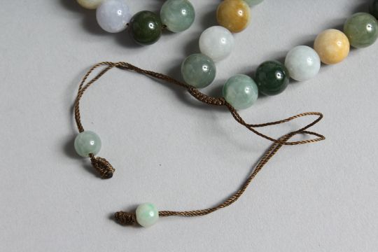 A JADE AND NEPHRITE BEAD NECKLACE.