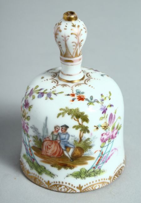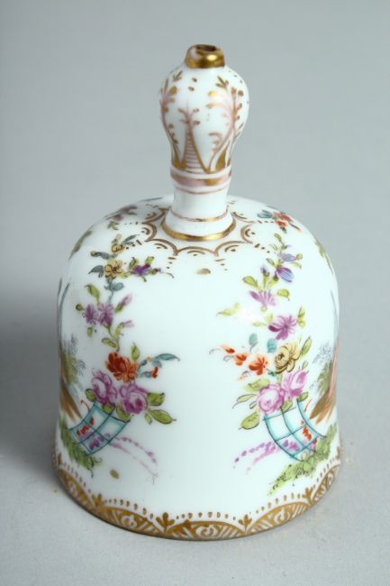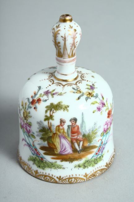 A CONTINENTAL PORCELAIN HAND BELL.
