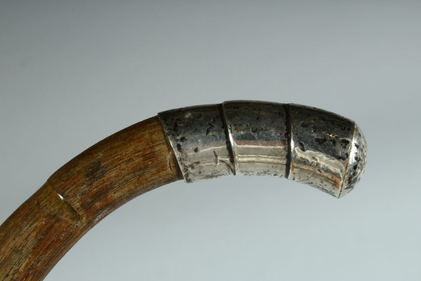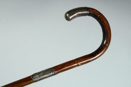 THREE VICTORIAN WALKING STICKS with silver tip handles.