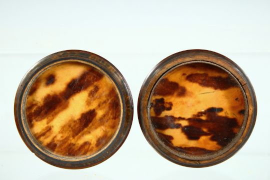 A VICTORIAN WOODEN CIRCULAR SNUFF BOX, the lid with Napoleon.