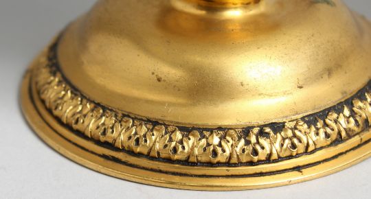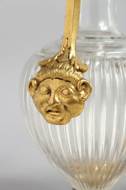 A VERY GOOD PAIR OF POSSIBLY FRENCH, CRYSTAL AND GILT METAL EWERS.