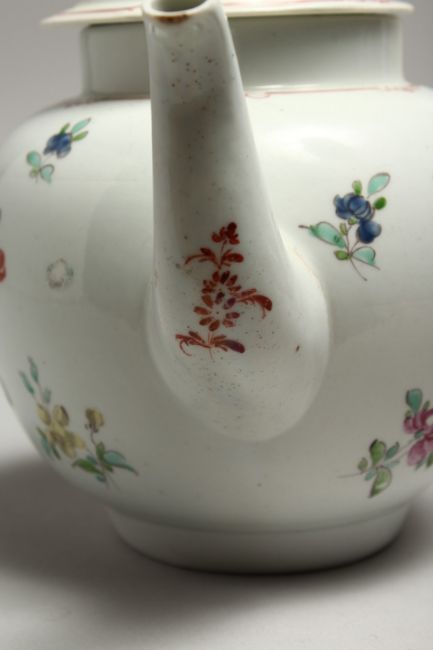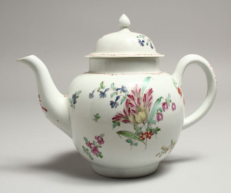 A CHRISTIANS LIVERPOOL TEA POT AND COVER painted with a tulip and other flowers in colour.