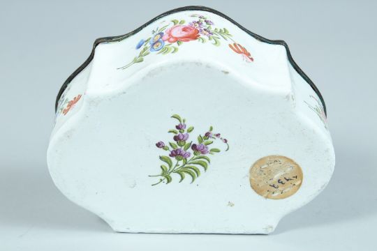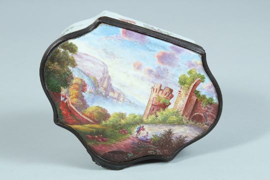 A LARGE ENAMEL SHAPED BOX AND COVER the lid with a lake scene.