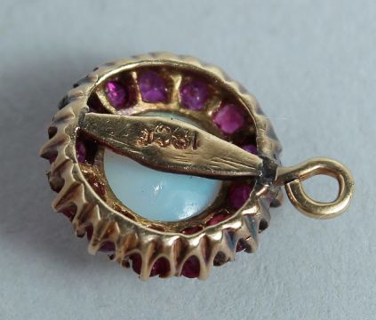 A RUBY AND OPAL CIRCULAR PENDANT.