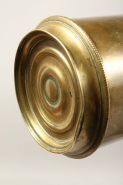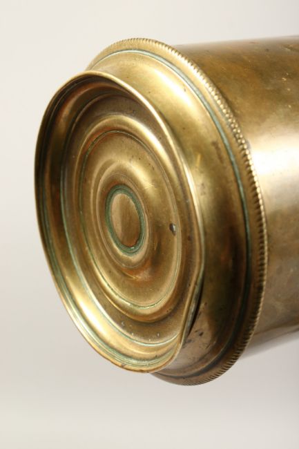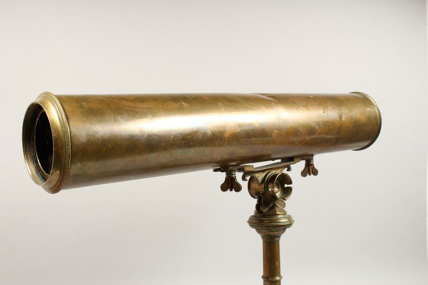 A 19TH CENTURY BRASS TELESCOPE on a tripod base.