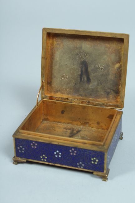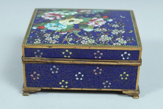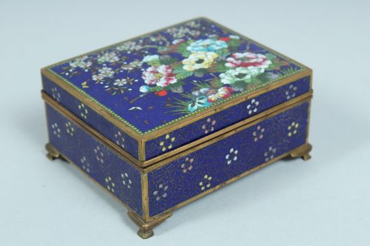 A JAPANESE CLOISONNE ENAMEL BOX AND COVER.