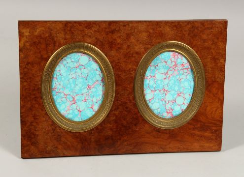 A WALNUT FRAMED PHOTOGRAPH FRAME with two ovals.