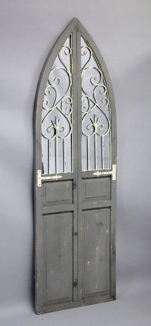 A MIRRORED IRON GATE, GREY.