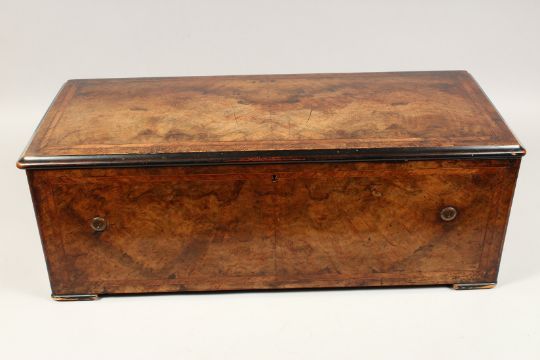 A LARGE SWISS WALNUT CASED MUSICAL BOX, CIRCA 1850, by GUSTARD, ERESBY.