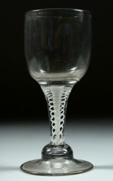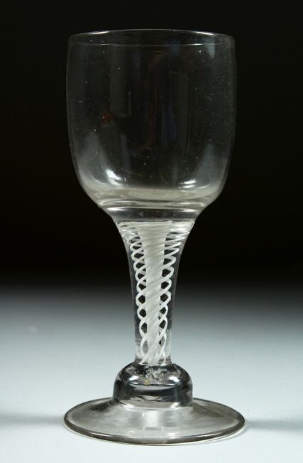 A LARGE GEORGIAN WINE GOBLET with white opaque stem, bowl 6.5cm deep, 16cm high.