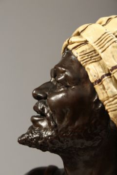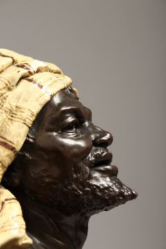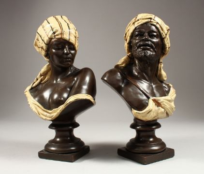 A VERY GOOD PAIR OF NORTH AFRICAN POTTERY BUSTS of a man and a young lady