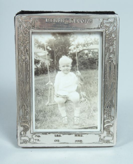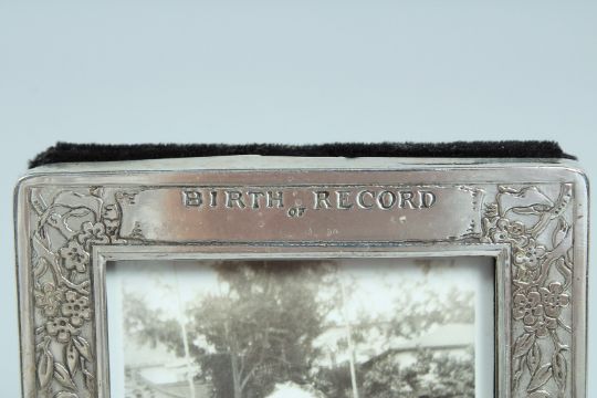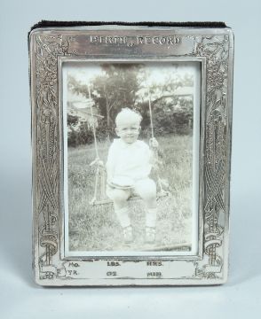 A SILVER BIRTH RECORD PHOTOGRAPH FRAME