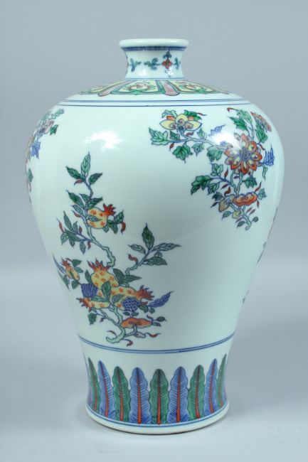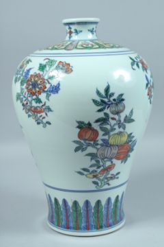 A LARGE CHINESE DOUCAI MEIPING decorated with panels of flowers.